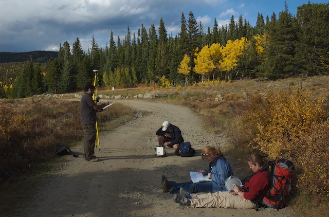 Caption: GEOL4714/5714 Gravity survey, Caribou 2008